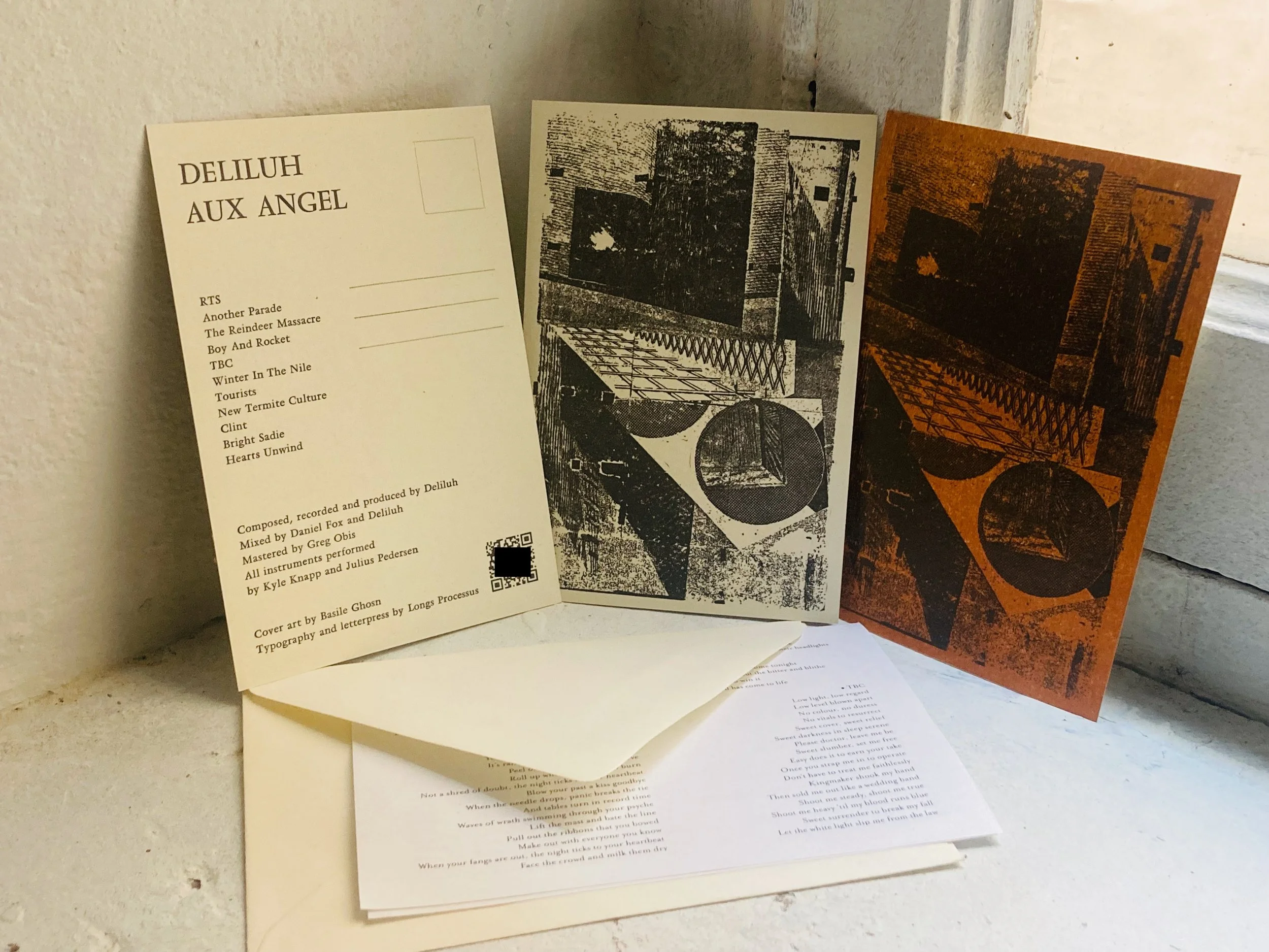 Letterpress postcards available in woodpressed orange or classic cream